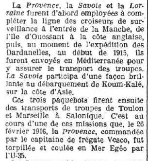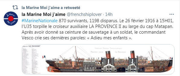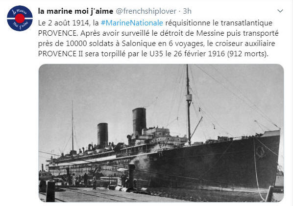 Commandant le croiseur auxiliaire "PROVENCE-II", il disparaît avec