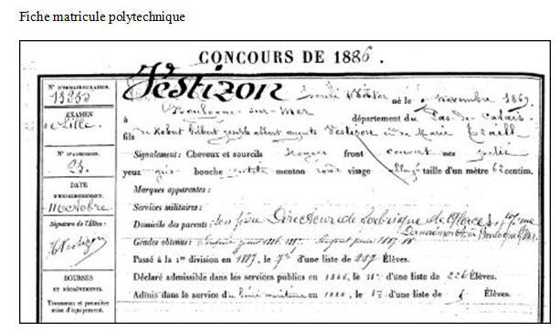 Elève du génie maritime le 1er octobre 1888, PARIS