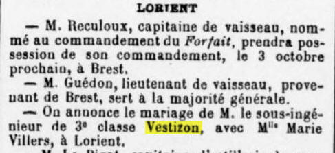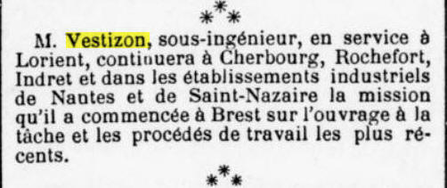 Sous ingénieur de 2ème classe le 10 novembre 1892 port LORIENT