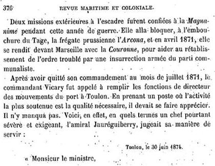 Extrait Revue maritime et coloniale / Ministère de la marine et des