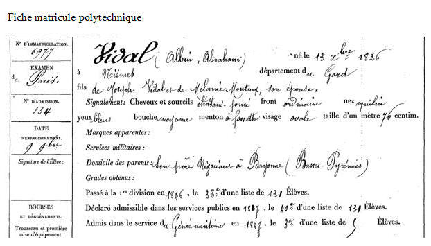 Ingénieur de 1ère classe le 8 mai 1877; port TOULON