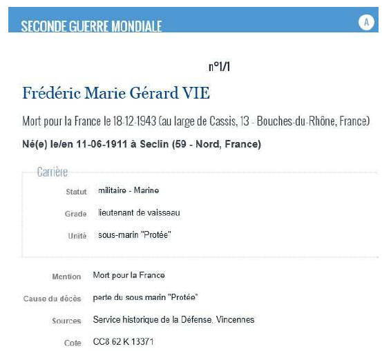 Par décision du 10 mars 1944, le lieutenant de vaisseau Vié a reçu