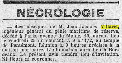BORDEAUX (Gironde) - Décédé le 23 juillet 1919 à Paris XV (Seine)