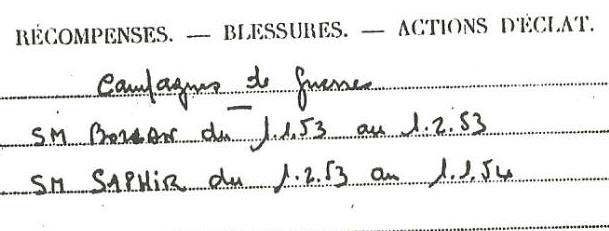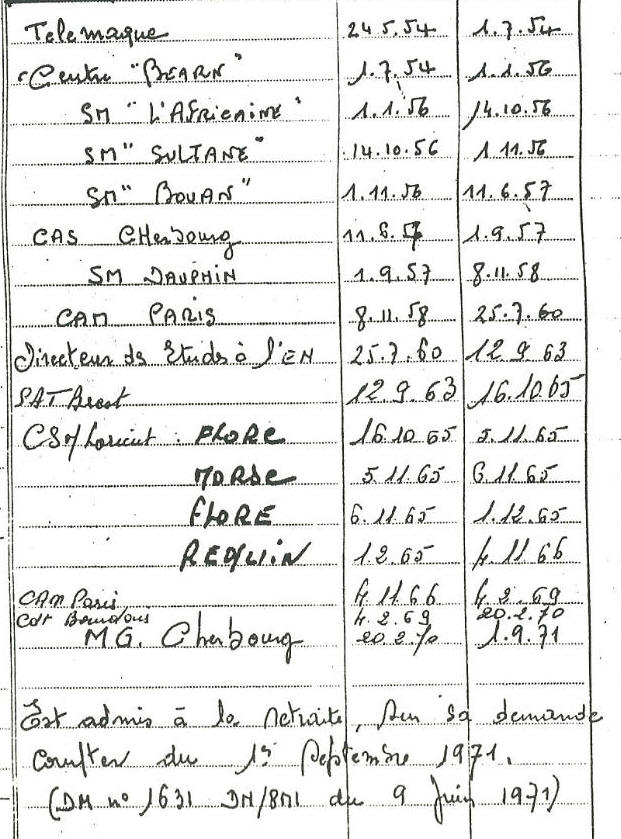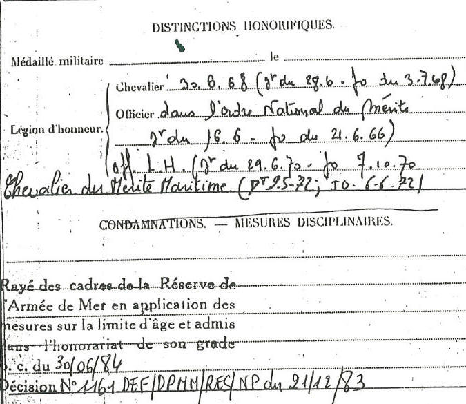 Port matriculaire TOULON   Aptitude à la navigation sous-marine Breveté A.S.M.    Officier de la Légion d'Honneur