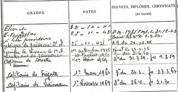 1er septembre 1945.  Lieutenant de vaisseau le 10 juillet