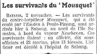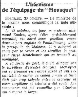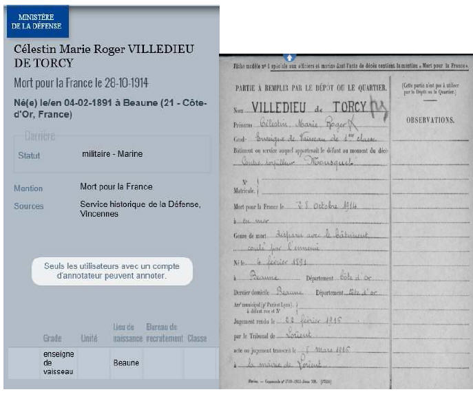 d'Or) - Disparu en mer le 28 octobre 1914 au Nord de POULO PENANG