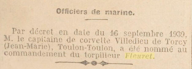 commande le torpilleur "FLEURET"