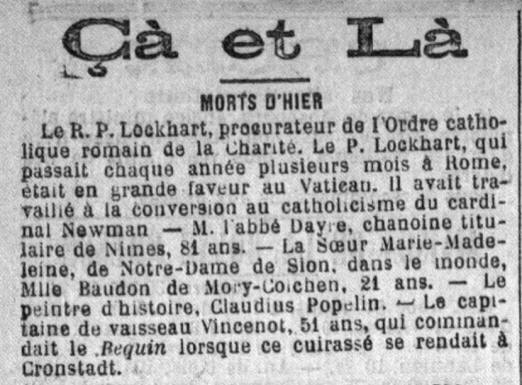 TREGUIER (Côtes du Nord, aujourd’hui côtes d’Armor) - Décédé le 17 mai 1892 à TOULON (Var).