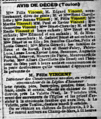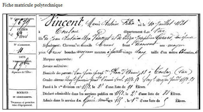 Fils de Jean Antoine Vincent, propriétaire et d’Eliza Joséphine