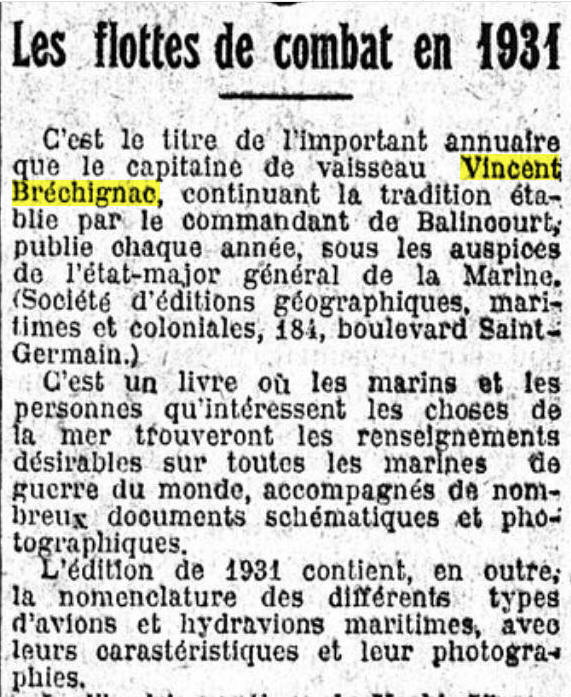 sera poursuivi de 1928 à 1943, par le Capitaine de vaisseau en