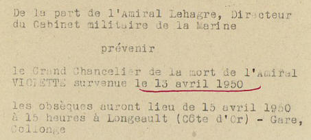 BESANCON (Doubs) - Décède le 6 avril 1950 à DIJON (Côte d'Or)
