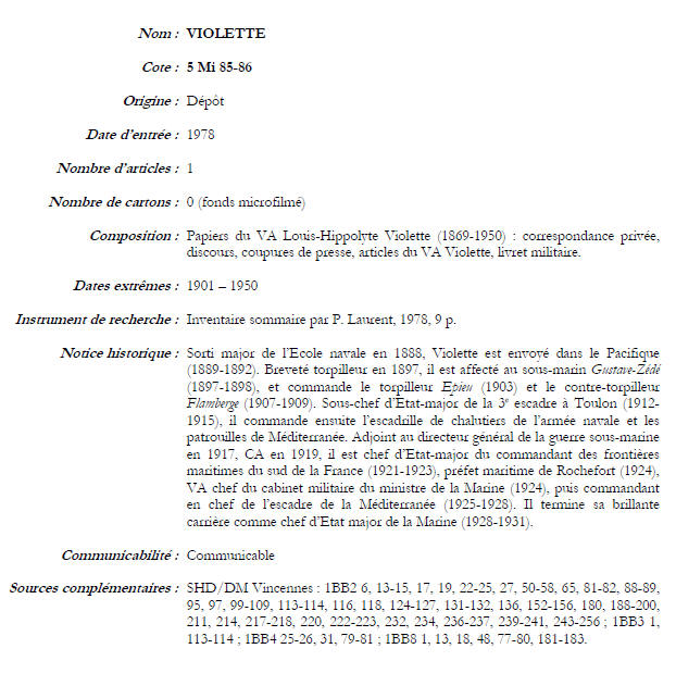 de l’amiral Violette à son épouse et à son fils (1914-1919) ;