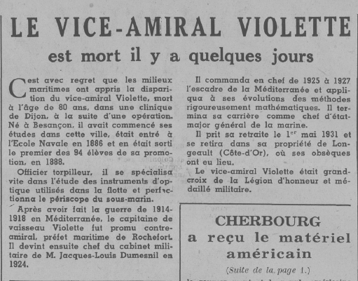 Violette est sous-chef d’état major sur le cuirassé Paris, puis