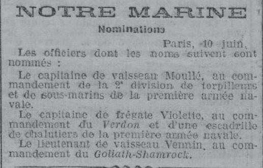 sous-marin allemand U 21 pénètre en Méditerranée. Violette est alors