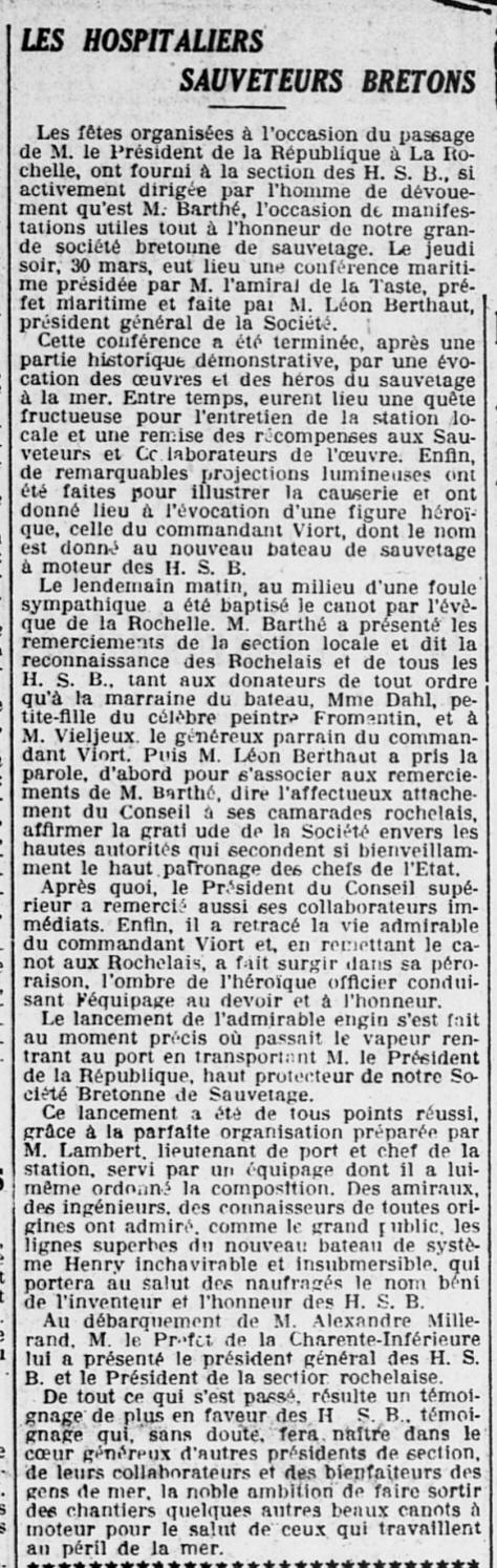 sauvetage " Commandant Viort", à la mémoire de cet officier mort
