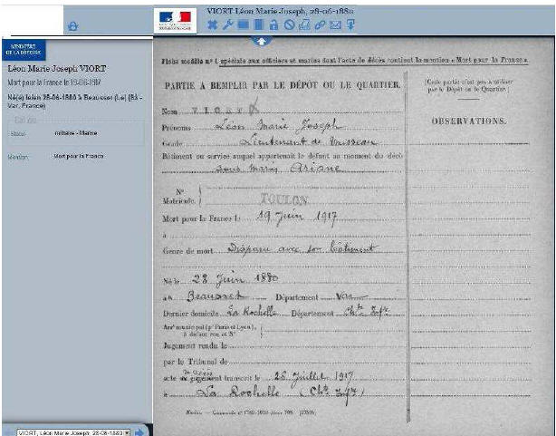 à la ROCHELLE (dernier domicile) le 26 juillet 1917.
