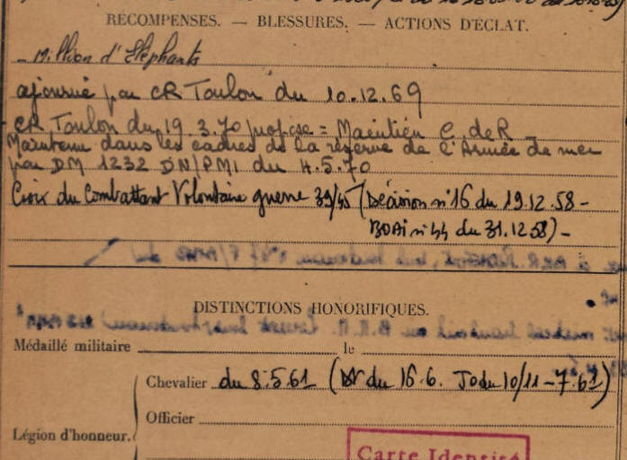 Extrait fiche matricule