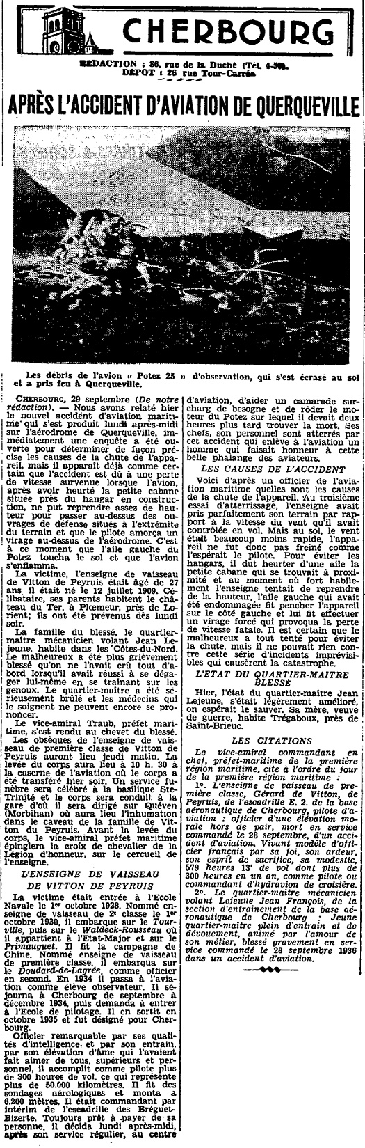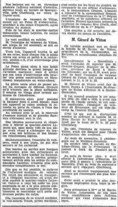 de Vitton de Peyruis trouva la mort le 28 septembre 1936 aux