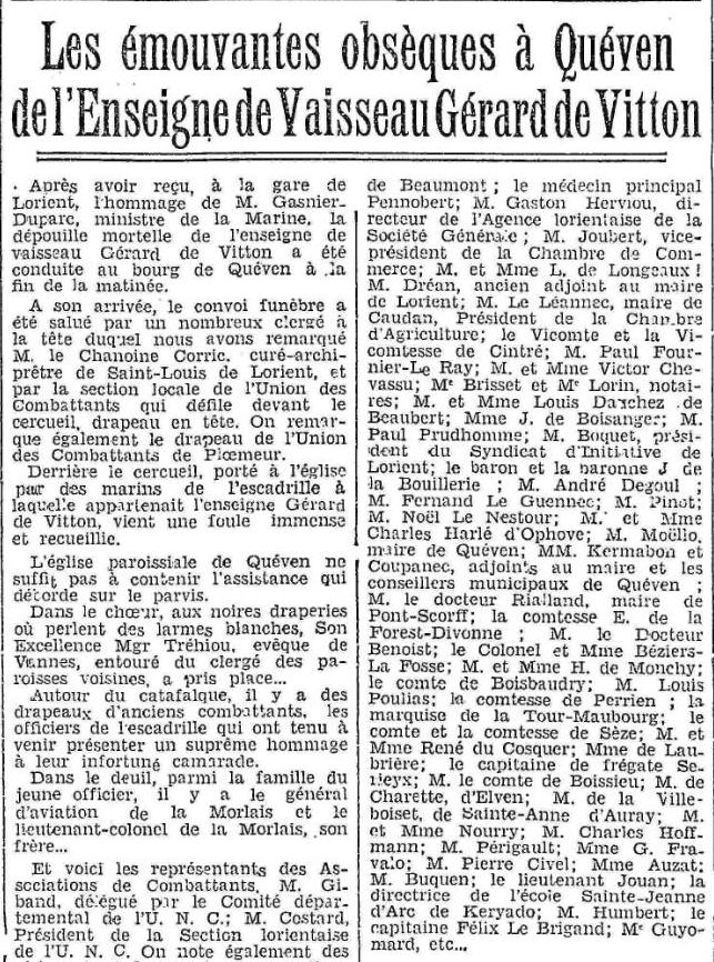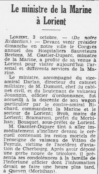 Extrait Le Nouvelliste du Morbihan / 2 octobre 1936