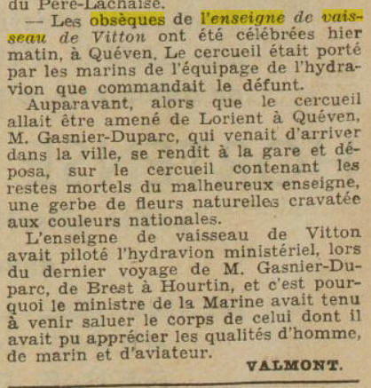 Par décision du 29 septembre 1936, l'enseigne de vaisseau Vitton de