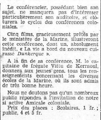 sur le croiseur "DU-CHAYLA", Division navale du MAROC (Cdt Prosper