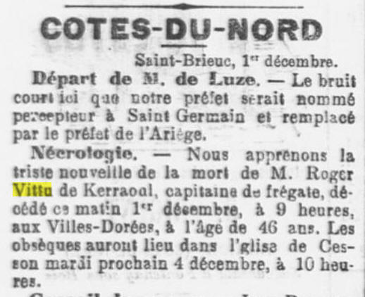 SAINT-BRIEUC (Côtes d'Armor) - Décédé le 1er décembre 1900 à à