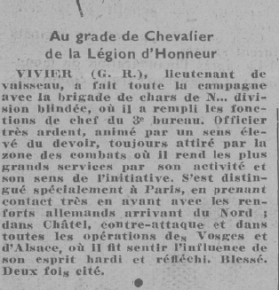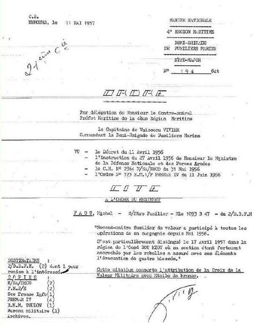 militaire (pour citation à l’ordre de l’Armée).