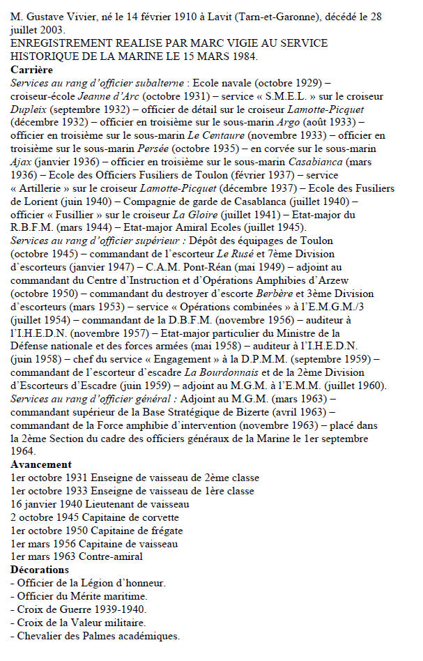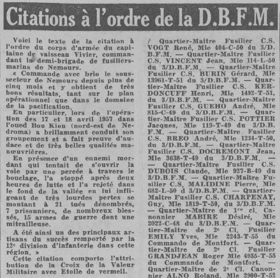 nouveau commandant de la DBFM,le C.V. Vivier,conclut en disant: "Et