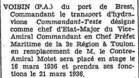 Capitaine de vaisseau le 6 octobre 1930.