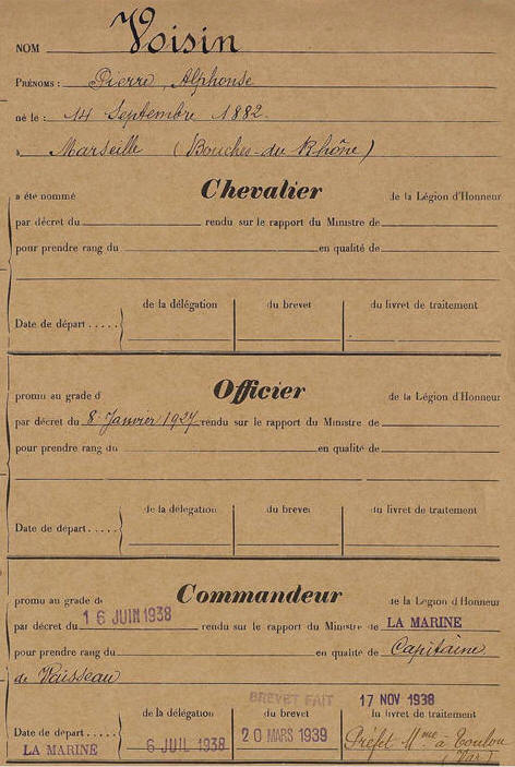 Commandeur de la Légion d'Honneur le 16 juin 1938.