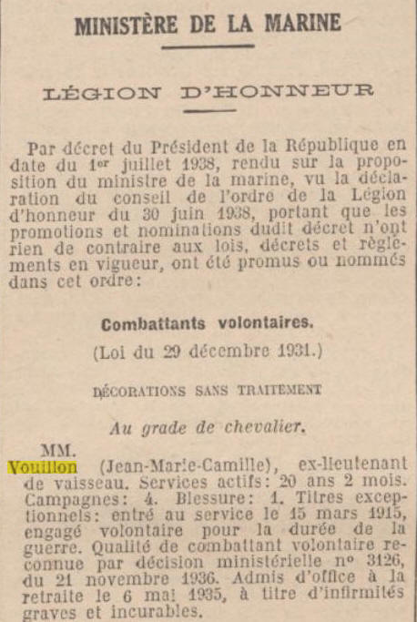 1ère classe le 15 mars 1920; port CHERBOURG.