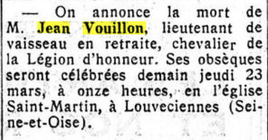 PARIS XVIIème (Seine) - Décédé en mars 1939 à LOUVECIENNES