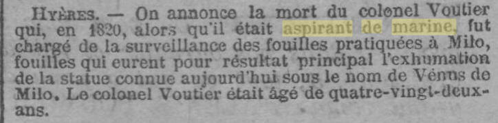 que faisant escale à Melos (ou Milo) avec la goélette l’«Estafette »