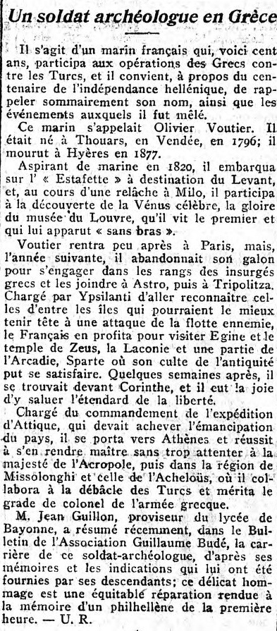 Paris pour participer à la défense de la capitale ; Olivier Voutier,