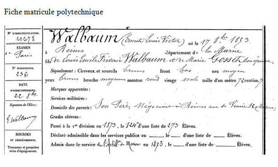 Élève de l'École polytechnique promotion 1872, opte pour