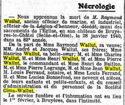 En 1934, la société R. Wallut et Cie fusionne avec la CIMA