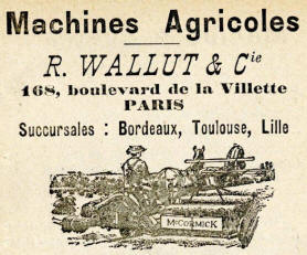 machines agricoles, la R.Wallut & Cie, basée à Paris.
