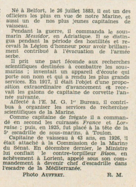 sous-marins à TOULON, Commandant le "MESSIDOR" (26 octobre 1916).