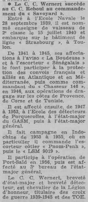Commandant l'ER Le Savoyard du 1er oct 1960 au 23 sept 1961