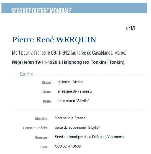 (Tonkin) - Décédé le 8 novembre 1942 en mer à CASABLANCA (Maroc)