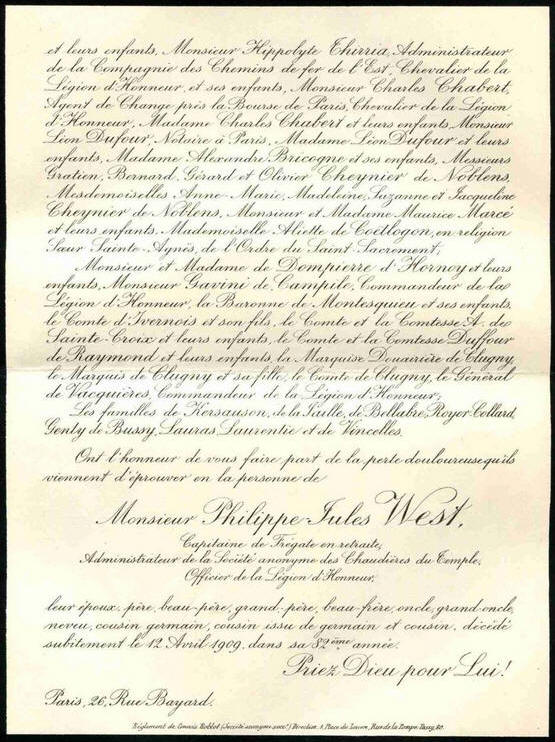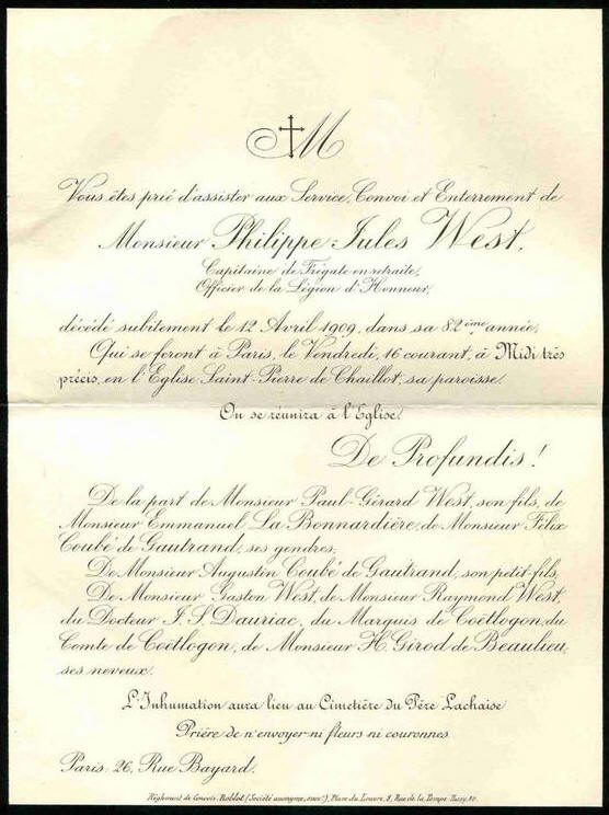 Décédé le 12 avril 1909 à VERSAILLES (Yvelines)