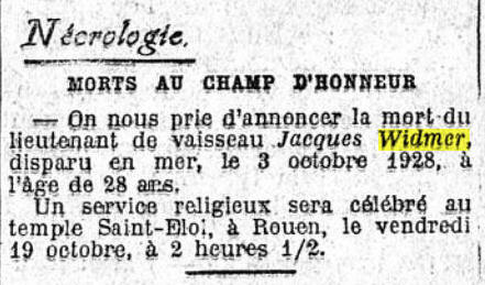 du 25 octobre 1928, le lieutenant de vaisseau Widmer a été nommé