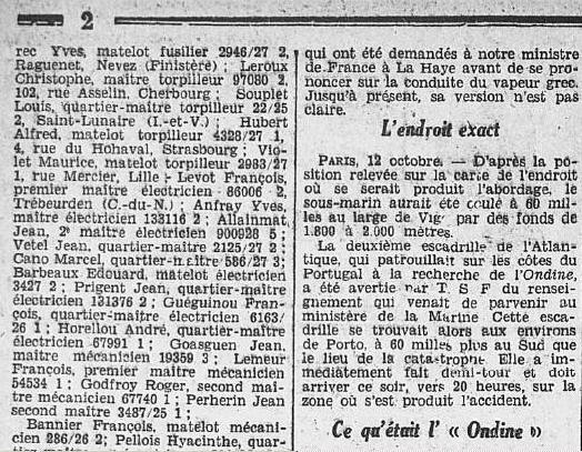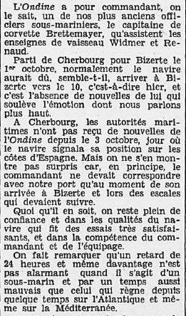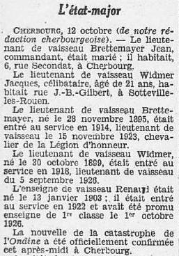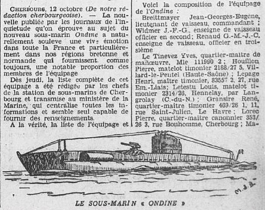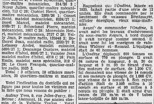 Second du sous-marin "ONDINE", il disparait en mer avec le