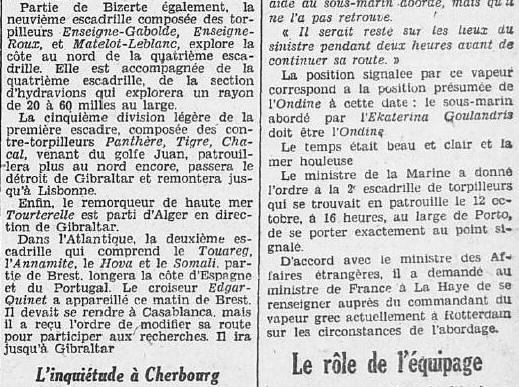 Ondine par le vapeur Grec Ekaterina, 37e sur la liste des quarante