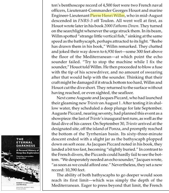 de vaisseau HOUOT, ils plongent à 9200 mètres de profondeur dans la