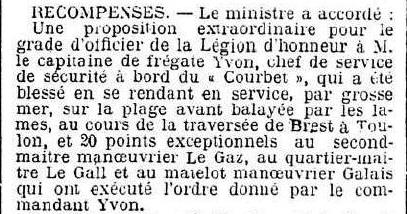 Chef du Service de sécurité sur le cuirassé "COURBET", 1ère Escadre,