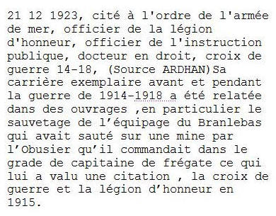 sauver le "BRANLEBAS", a dirigé l'évacuation et le sauvetage du