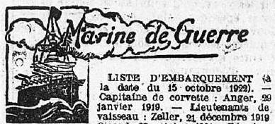 Enseigne de vaisseau de 2ème classe le 5 février 1916; port