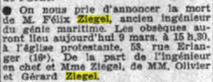 Fils de Isidore, chef d’institution et de Marie ZIEGEL