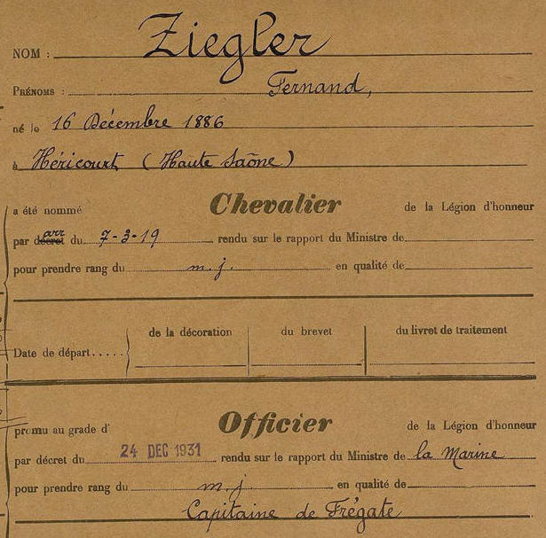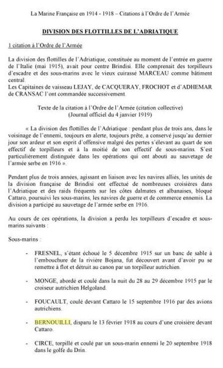 le 5 décembre 1915 (Cdt René JAOUEN), il sera cité à l'ordre de